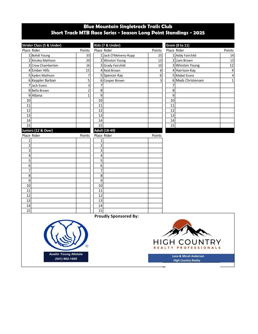 We have multiple races for each age category. The course is great for all levels of cyclists and is approximately one half mile, which includes a combination of gravel double-track and single-track.